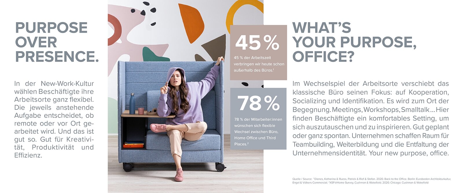 Menschen brauchen Interaktion. Um sich zu inspirieren, zu motivieren, voneinander zu lernen. Trotz aller Vorteile des Home Office ist die Rückkehrbereitschaft ins Büro deshalb hoch. Es sind vor allem die Möglichkeiten zum spontanen Austausch und zum gemeinsamen Erarbeiten von Themen, die Angestellte für Office-Präsenz begeistern.