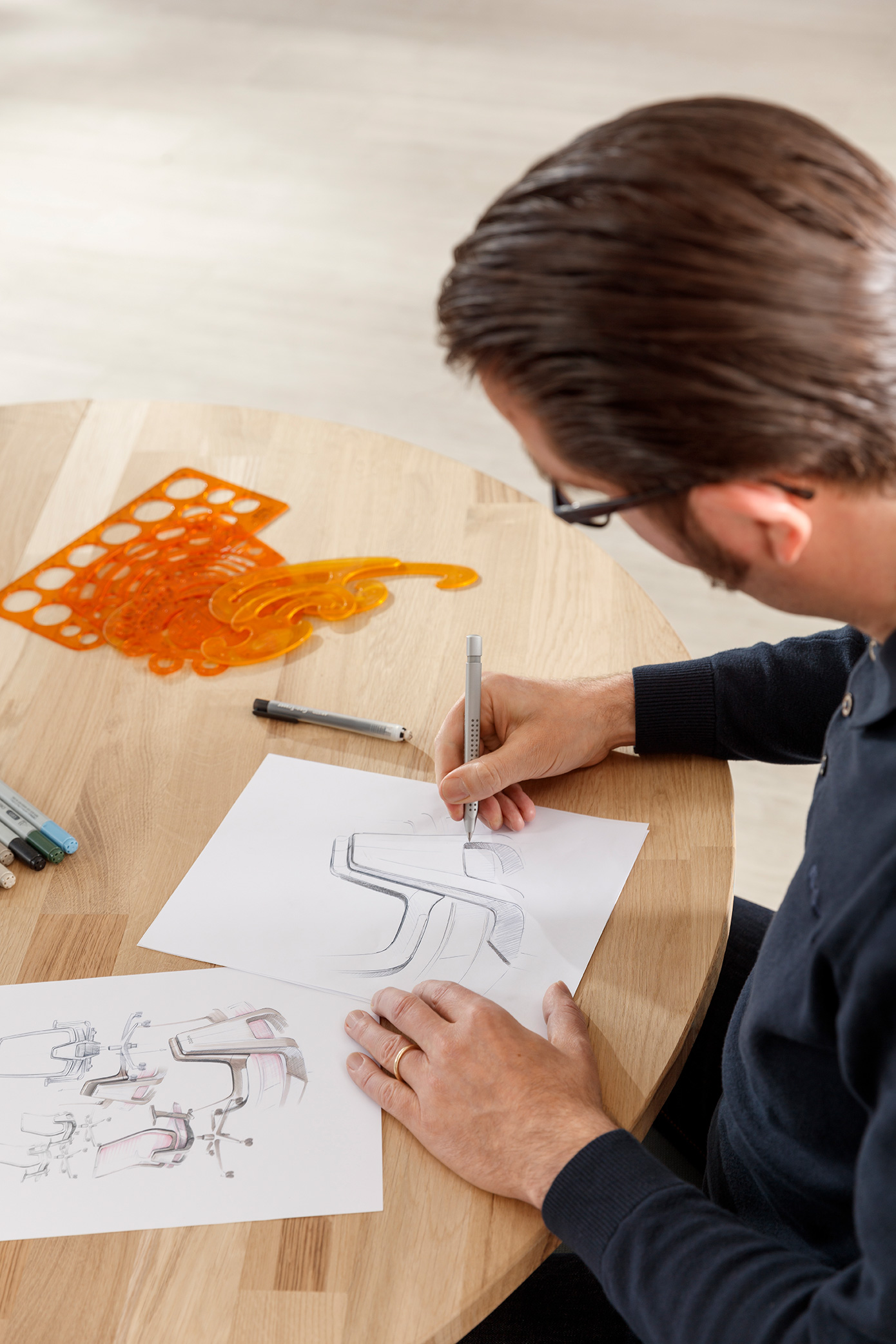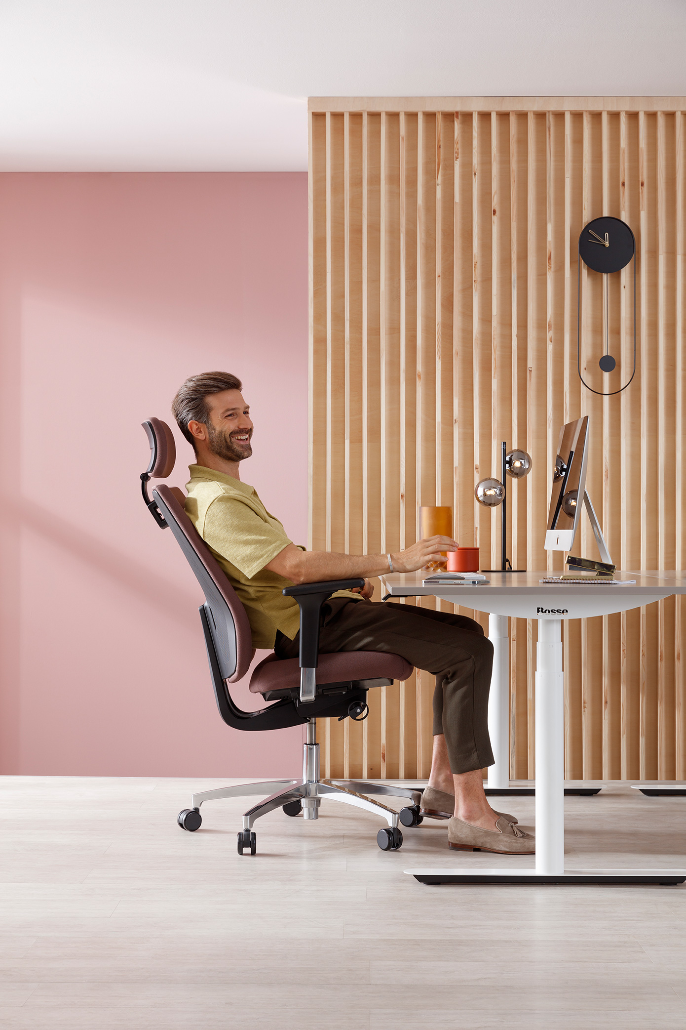 Le contour de ligne dynamique du dossier, le passage sans transition vers le support de dossier et les fins bords éclairés forment une unité des plus expressive. Comme si le design était fait d’un seul moule.