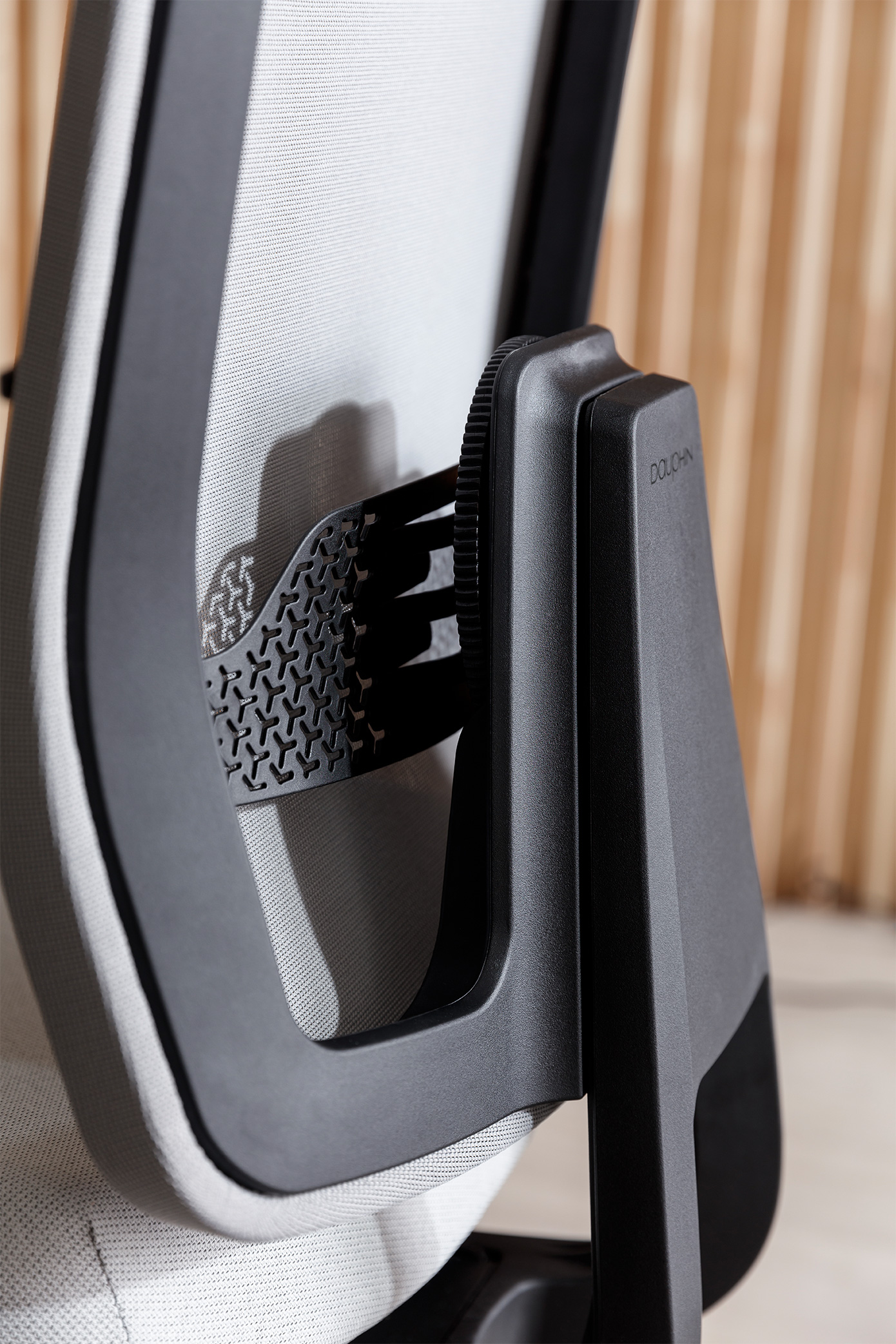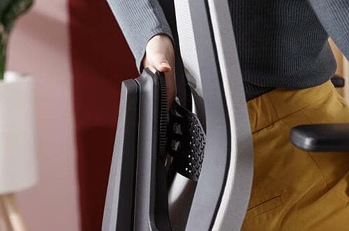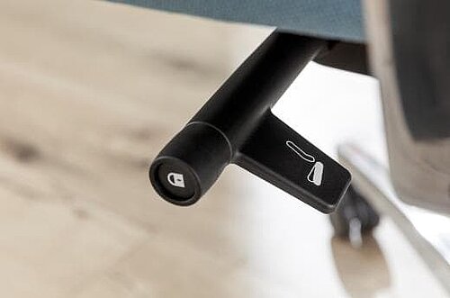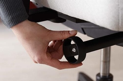 Elle suit votre mouvement dynamique: Vous pouvez régler la force de rappel du dossier rapidement et facilement à l’aide de la molette rétractable de manière à ce que votre torse soit délicatement soutenu quand il se redresse, sans être cependant poussé vers l’avant.