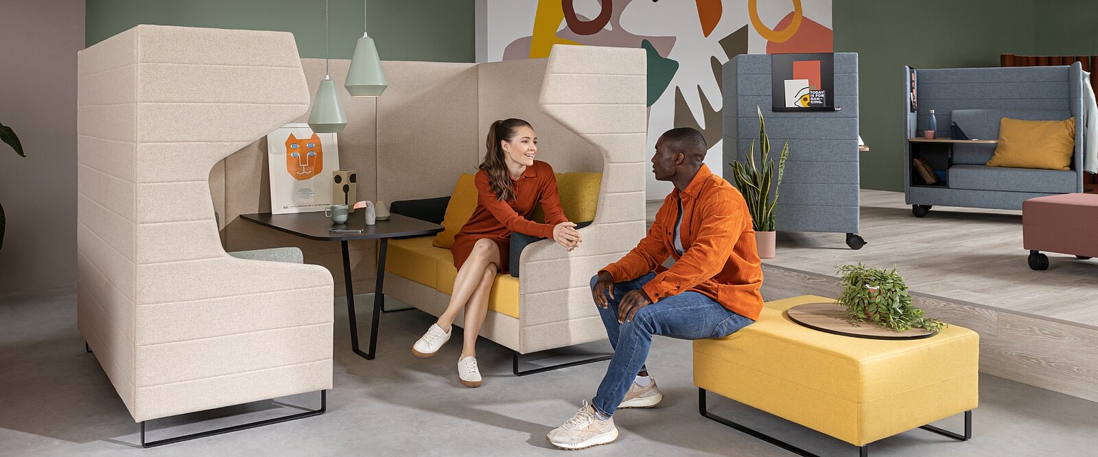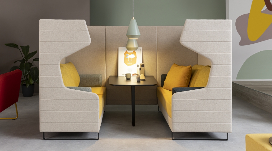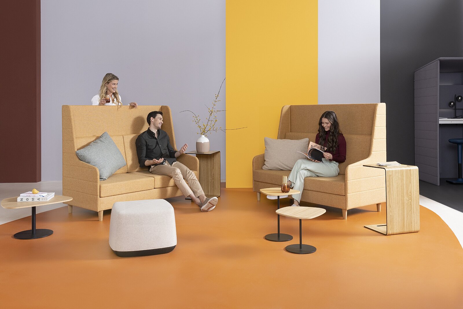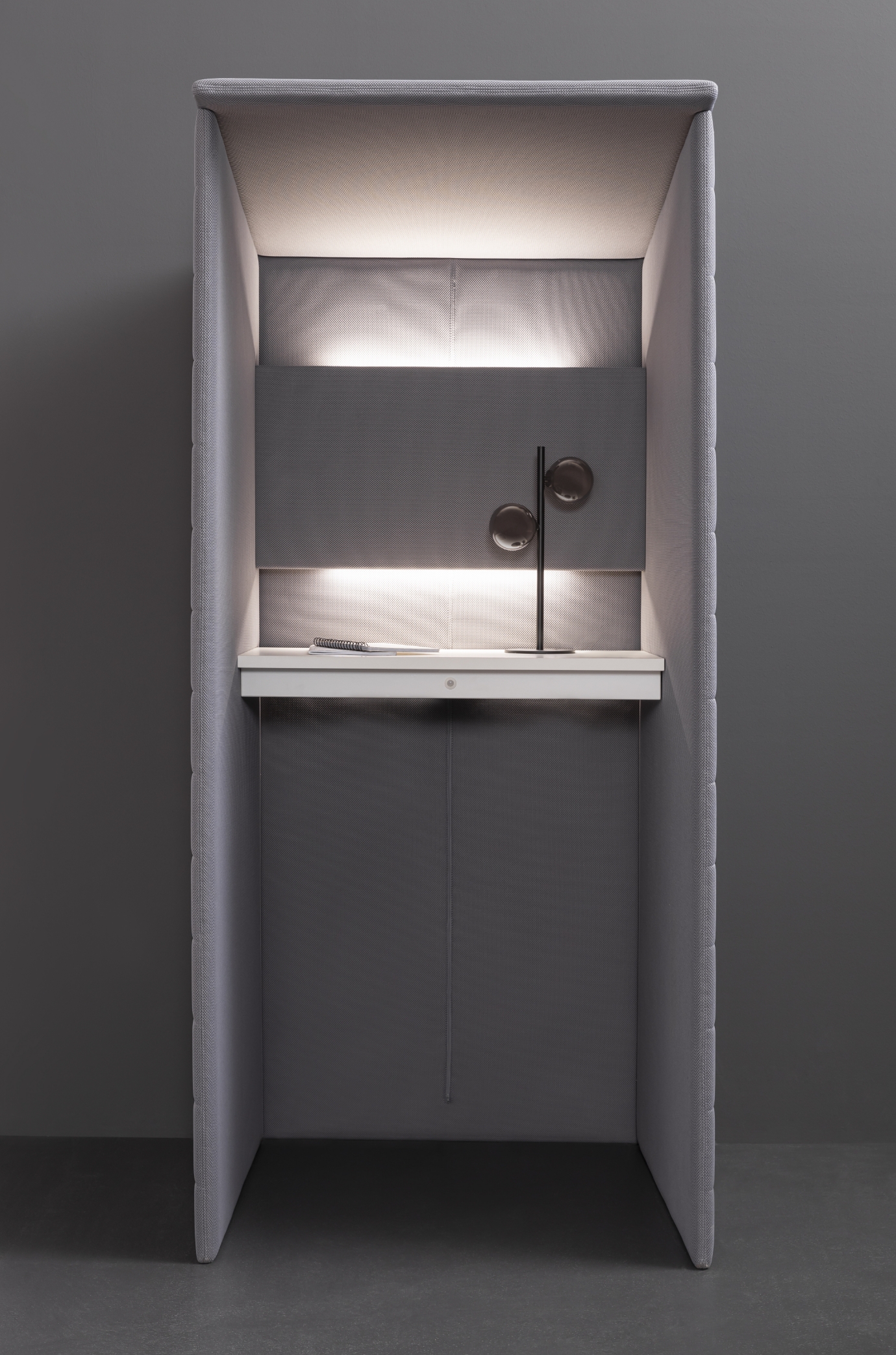 Haut lieu de la communication. En face-à-face dans un cadre de confort, la configuration en U d’Atelier produit un espace dans l’espace agréablement privatif. Ce lieu de retrait s’avère propice aux conversations, qu’elles soient entretiens approfondis ou discussions à la bonne franquette. La cabine Atelier est elle aussi un lieu de retraite discret et calme pour les appels spontanés.