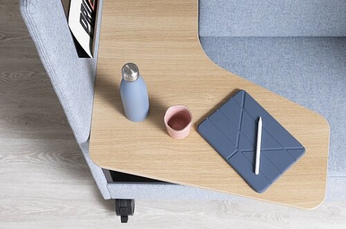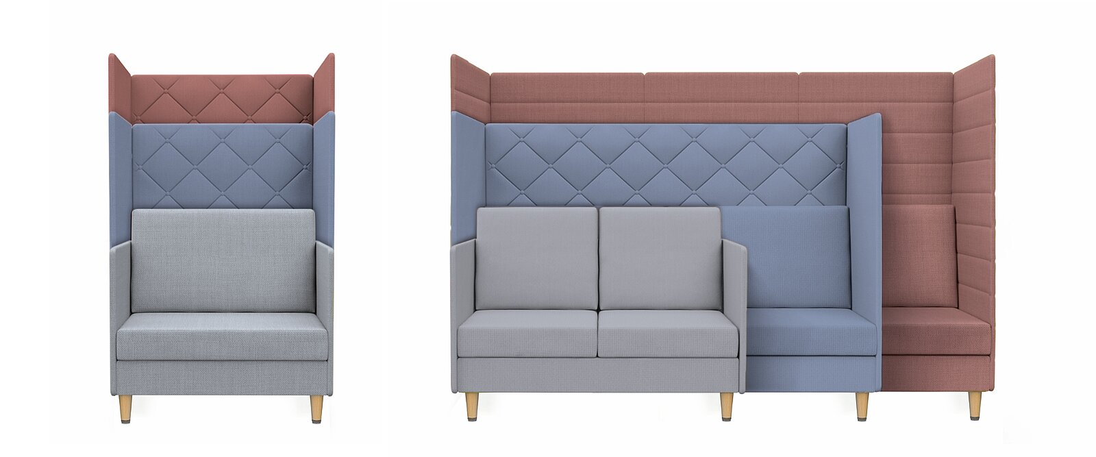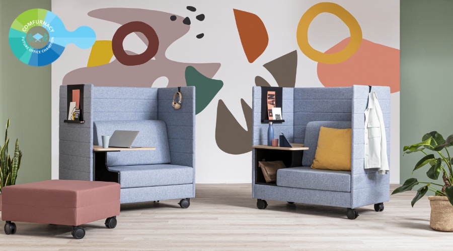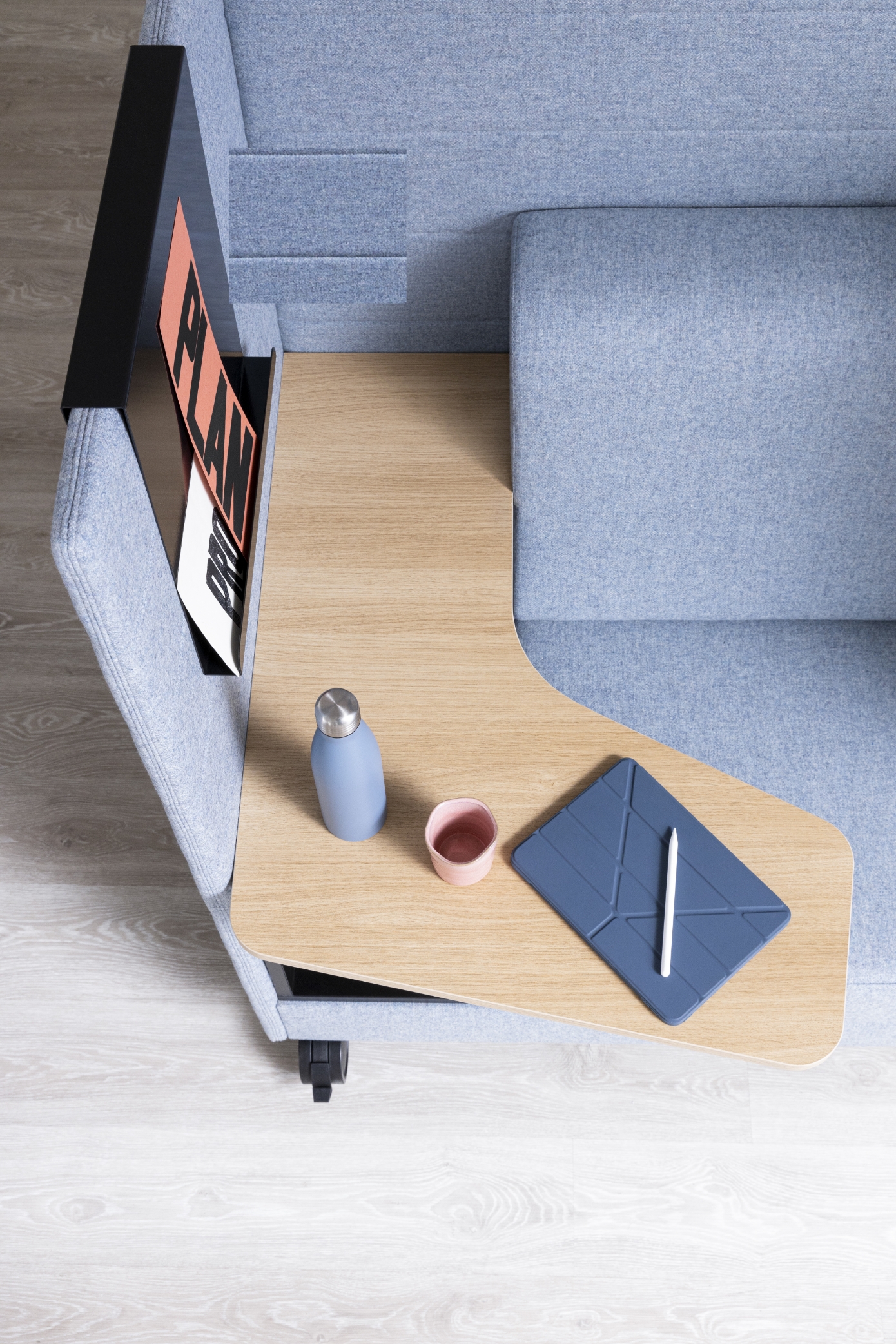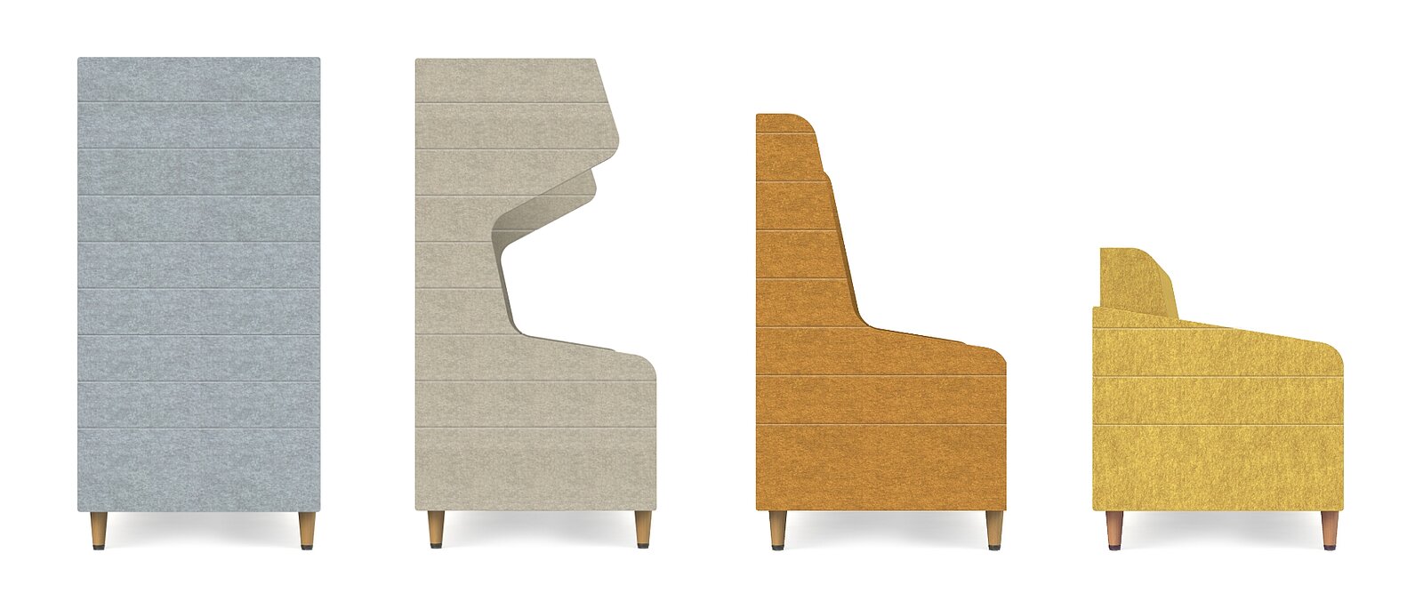 latérales et arrière au contour distinctif. Grâce à leurs roulettes, elles peuvent être positionnées sans effort et aménagées aisément en espace privé et en coworking.