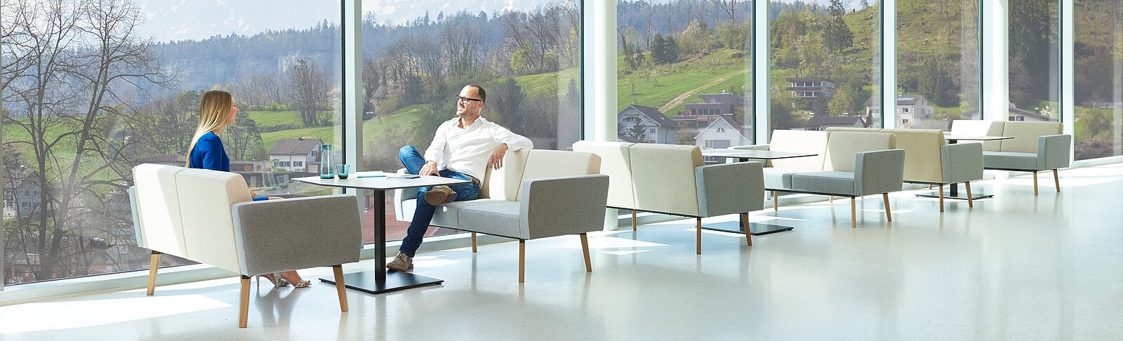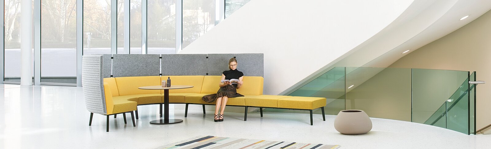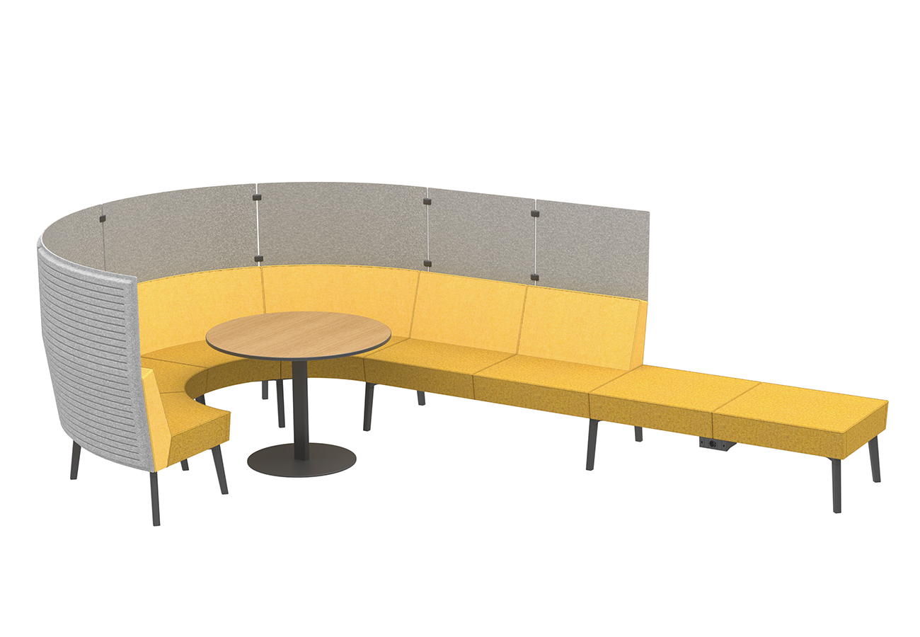 Reefs s'inspire de la diversité infinie du monde subaquatique, au sein duquel nul récif de corail ne ressemble à un autre. La composition modulaire du système donne lieu à de multiples configurations individuelles qui passent par diverses formes modernes en serpentin, en cercle ou en fer à cheval, dans des situations classiques de réunion dotées de meubles distincts. Sur ces îlots de reefs, les gens peuvent échanger et promouvoir les nouvelles idées dans un esprit d'équipe et avec créativité.