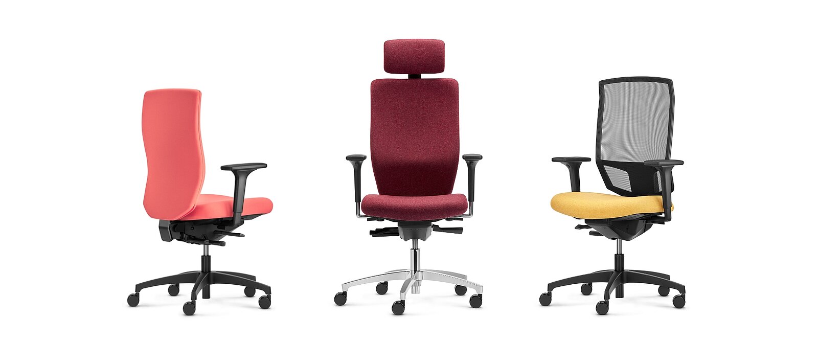 Avec dossier capitonné confortable, entièrement capitonné cosy ou résille aérée? Avec ou sans appuie-nuque ergonomique? Combinez votre Stilo ES selon vos envies!