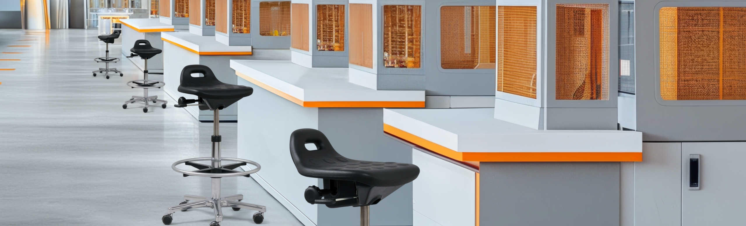 Peu importe qu’ils soient utilisés dans un salon de beauté ou devant une chaîne de montage: nos produits spécifiquement adaptés au poste de travail debout représentent une solution optimale qui permet non seulement de maintenir en bon état la musculature qui sert à adopter une posture correcte, mais aussi de réduire les absences au travail, dues à des arrêts maladie. Grâce à des matériaux solides et résistants, et aux normes de qualité les plus strictes, nos modèles vous prouvent durablement, que la productivité et la position assise sont intiment liés.