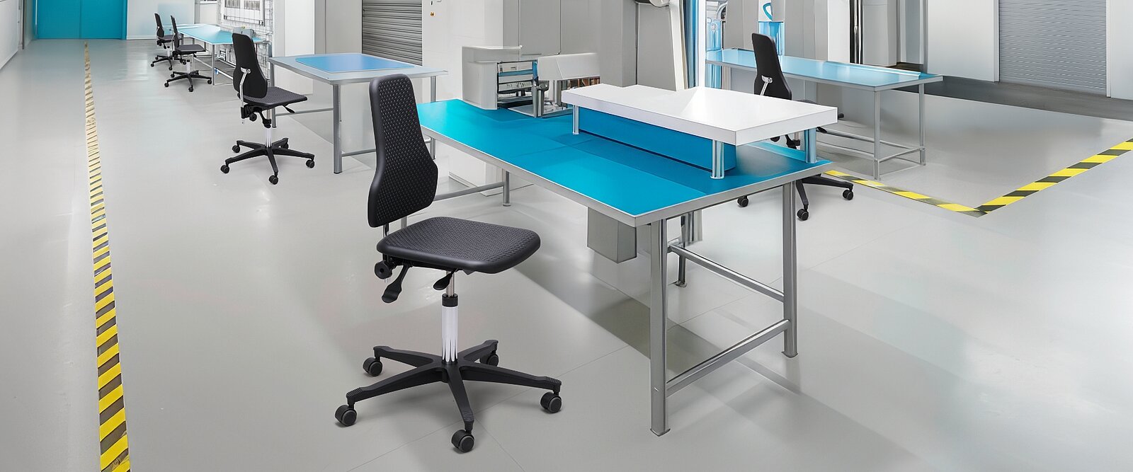 La stabilité et la solidité sont d’autres critères importants auxquels le siège de travail doit répondre pour une utilisation dans une salle de production ou dans un atelier. Le siège doit absolument rester stable, plus particulièrement lorsque l‘utilisateur se penche vers l’avant ou lorsque la tâche demande un gros effort physique. De plus, il est également essentiel d’utiliser des matériaux résistants, qui ne craignent ni les étincelles, ni l’huile de graissage, ou encore la poussière.